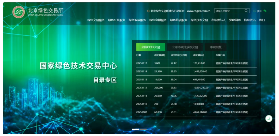 (2) 北京綠色交易所:全國CCER集中交易平臺