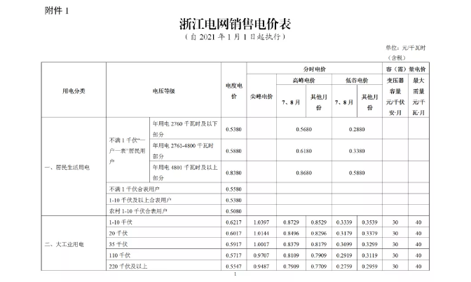 2021年1月1日起,浙江省大工業(yè)平均銷售電價(jià)預(yù)計(jì)將較2019年下降每千瓦時(shí)5.2分。大工業(yè)用電1-10千伏、20千伏、35千伏、110千伏、220千伏及以上各電壓等級低谷電價(jià)每千瓦時(shí)將分別下降6.25分、6.25分、6.25分、6.05分、7.25分。同時(shí),7、8月份各電壓等級低谷電價(jià)在上述降價(jià)基礎(chǔ)上再下調(diào)2分錢。政策實(shí)施后,預(yù)計(jì)年減輕我省大工業(yè)用戶用電成本約115億元,為促進(jìn)我省制造業(yè)高質(zhì)量發(fā)展?fàn)I造良好環(huán)境。