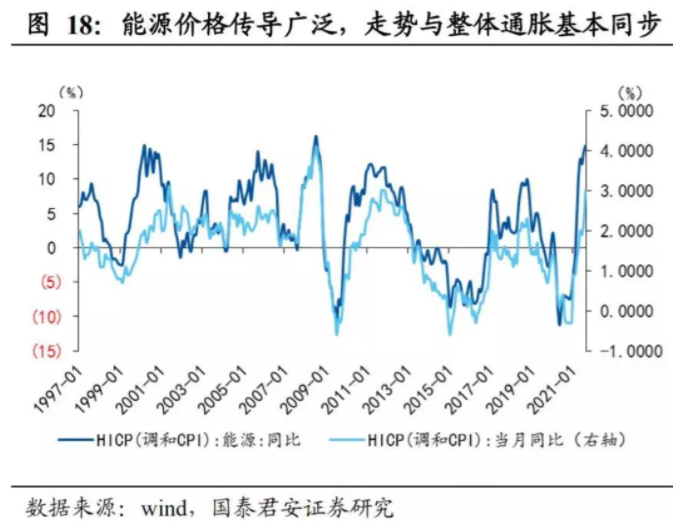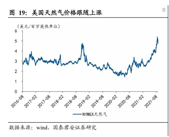國君分析指出,歷史上歐洲的能源CPI與整體CPI的波動基本同步。由于歐洲能源緊缺,當前美國的天然氣價格也出現暴漲,盡管美國在頁巖氣的支撐下,基本可以實現內部的供需平衡。總體看,能源危機的沖擊將導致全球通脹壓力加大。