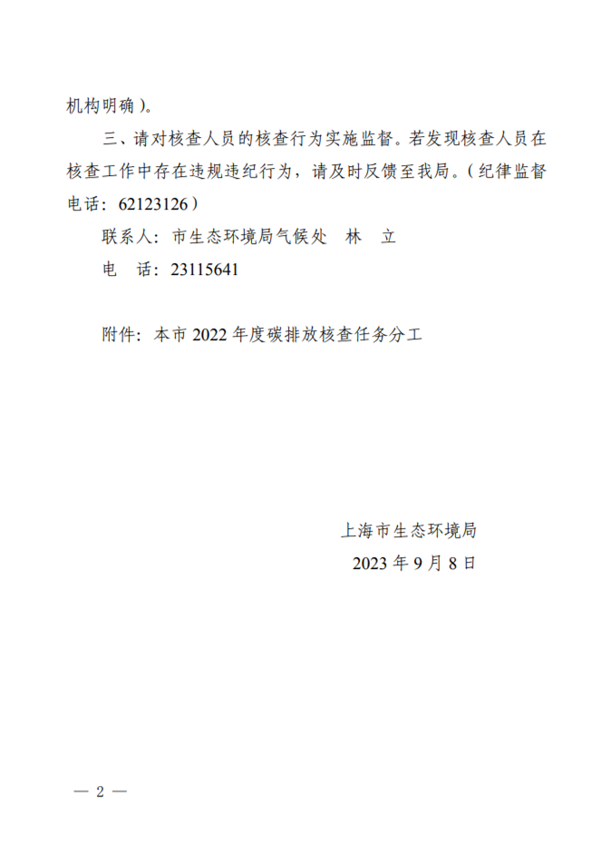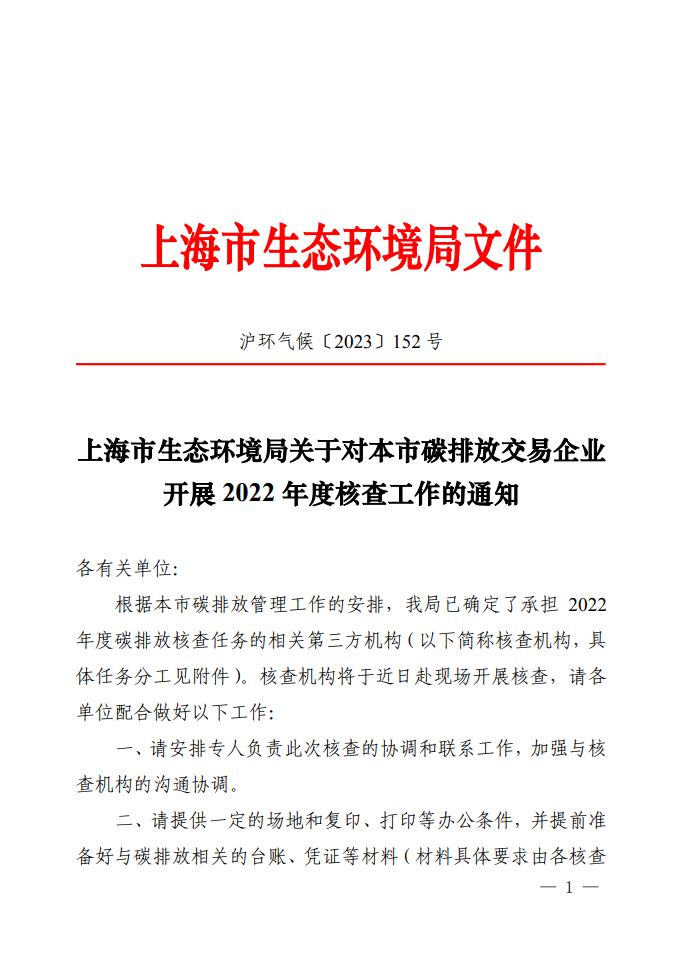 上海市生態環境局關于對本市碳排放交易企業開展2022年度核查工作的通知
