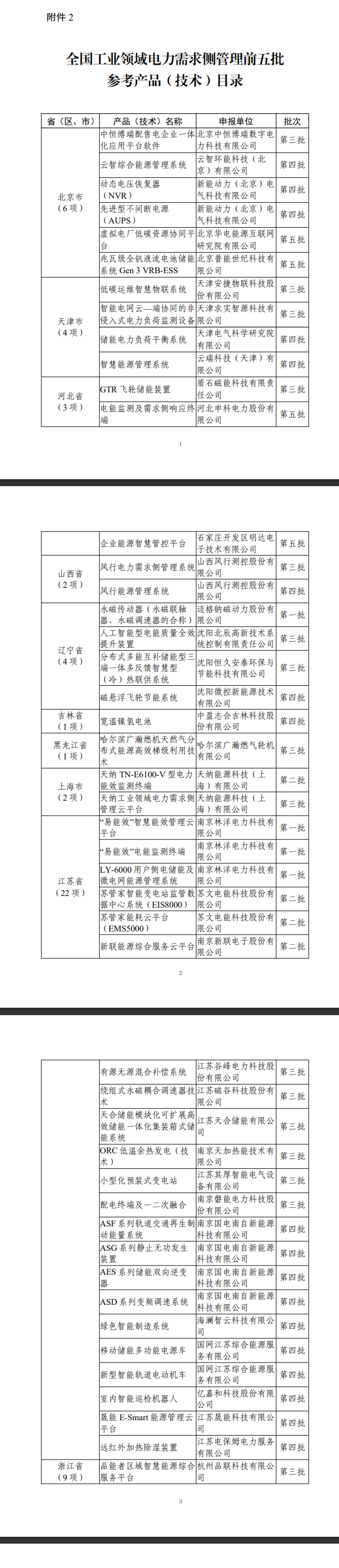 2.全國工業領域電力需求側管理前五批參考產品(技術)目錄