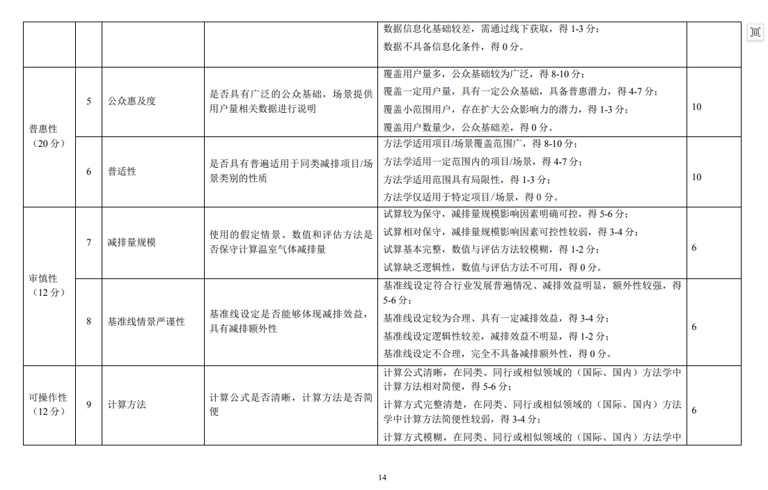 1.符合國家和地區生態文明政策導向,具有降碳、減污、擴綠、增長等協同效益,有利于引導社會綠色低碳發展的領域,優先選取有區域代表性、統計基礎好、數據可獲得性強的項目或場景類別。重點鼓勵突出本市特色的碳普惠方法學。