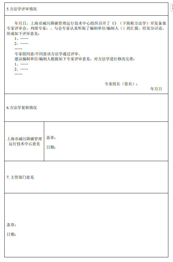 1、已形成方法學文本的,應按照《上海市碳普惠方法學開發與申報指南(試行)》的有關要求編寫材料,包括申請表、方法學文本、編制說明與試評價分析報告等(見附件1)。