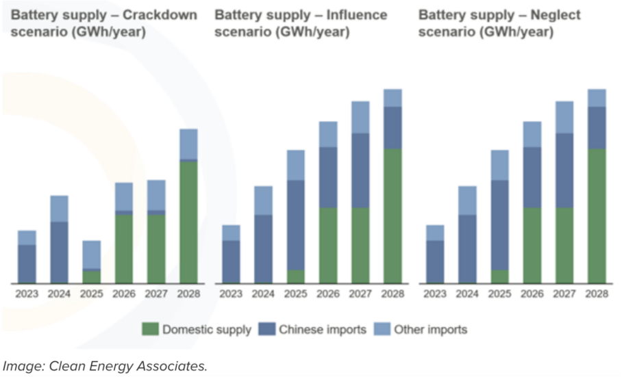 美國清潔能源伙伴組織(CEA)數據也顯示,美國已有超過80GW的儲能電池制造產能計劃,預定在2028年之前上線,但在該時間節點可能只有一小部分產能上線。CEA預測,如果特朗普政增稅,2025年來自中國的供應量將大幅下降,但時間太短美國制造業無法迅速擴大規模以彌補日益擴大的短缺,從其他國家(主要是韓國)的進口也無法彌補這一差距。2025年美國將有63%的供應缺口,2028年將有29%的供應缺口需要填補。
